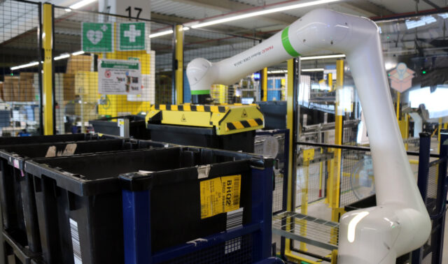 ACN El Prat de Llobregat – A punt de fer 10 anys, el centre de primera milla d’Amazon al Prat de Llobregat, un dels 10 de la multinacional a l’Estat, s’ha convertit en referent europeu en innovació tecnològica per millorar l’ergonomia i la sostenibilitat. Així, el centre, que amb 3.000 treballadors gestiona mig milió de paquets diaris, compta, en una prova pilot a nivell mundial, amb un robot col·laboratiu, l’Stark, que permet la interacció entre l’operari i la màquina reduint un 50% la robotització. El BCN1, com es coneix internament, també disposa d’una nova empaquetadora, la primera de l’Estat, que permet reduir en 26 grams el paper utilitzat i doblar el nombre de paquets per hora superant els 700.