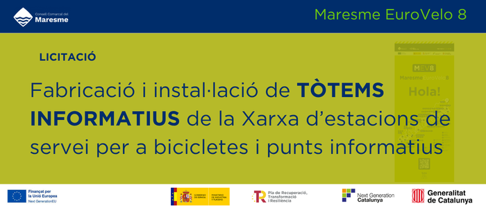 Les empreses interessades poden presentar les seves ofertes fins a les 23:59h del 7 d’abril de 2026 per al contracte de fabricació i instal·lació de tòtems informatius en el marc del projecte de sostenibilitat turística ‘Maresme EuroVelo8’.