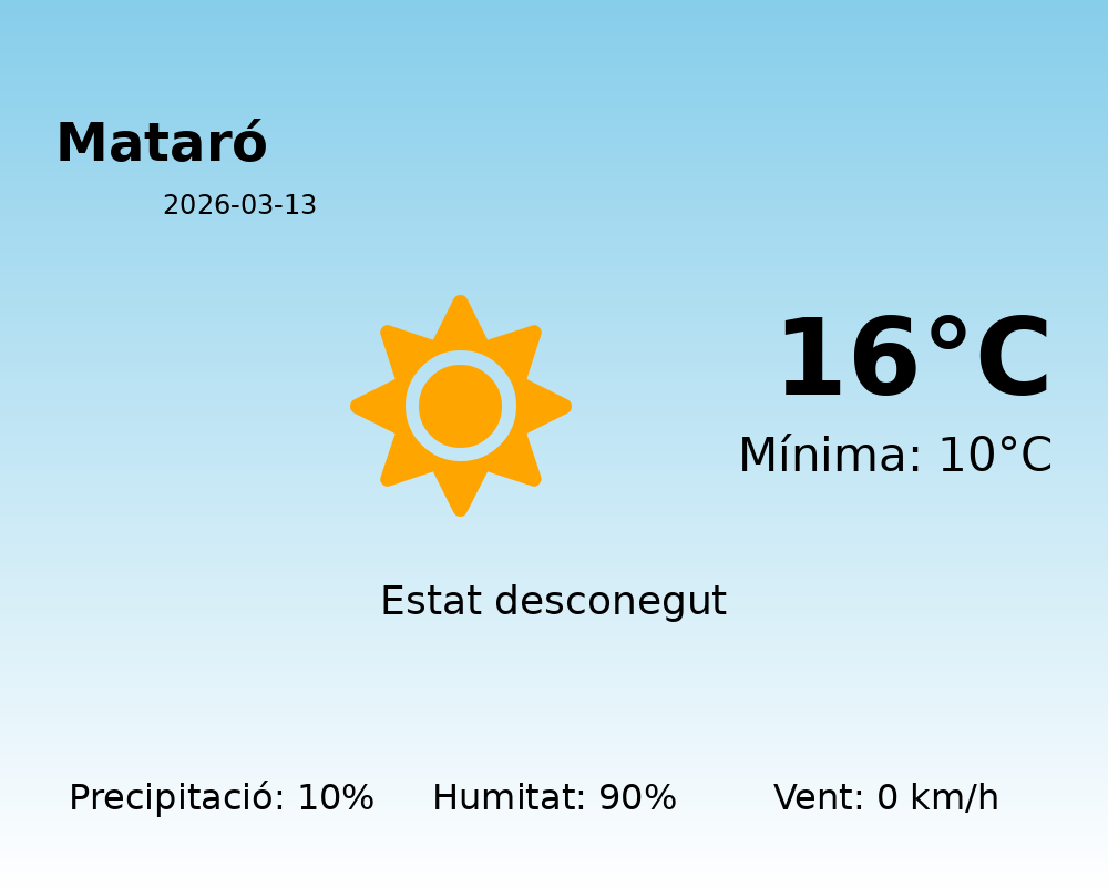 Avui, els habitants de Mataró poden esperar un dia amb temperatures moderades. La temperatura màxima assolirà els 16°C, mentre que la mínima es mantindrà prop dels 10°C. A aquestes temperatures agradables, cal sumar-hi un alt nivell d’humitat, aproximadament al 90%.