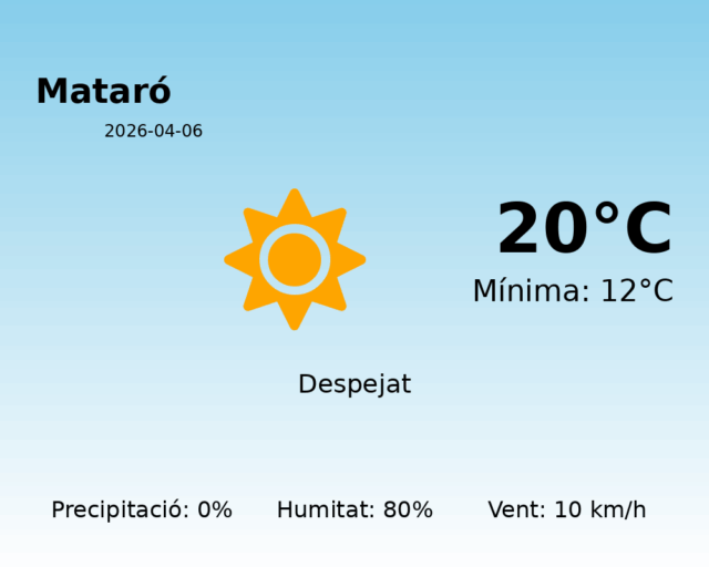 Bon dia a tots els mataronins! Avui, 6 d’abril de 2026, Mataró gaudirà d’una jornada amb temperatures agradables i un clima estable, ideal per a activitats a l’aire lliure.
