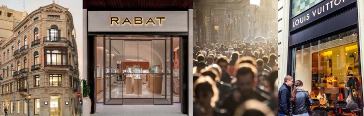 A la capital catalana, el Passeig de Gràcia repeteix com epicentre de boutiques de gran luxe, amb marques de moda com Versace i Louis Vuitton juntament amb firmes de joieria d’alta gamma com Bvlgari, Rabat o Chopard, que s’afegeixen a la decoració que il·lumina l’eix modernista entre La Pedrera i la Casa Batlló.