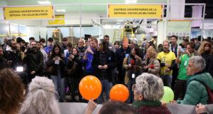 Una protesta a l’estand de l’exèrcit espanyol al Saló de l’Ensenyament...