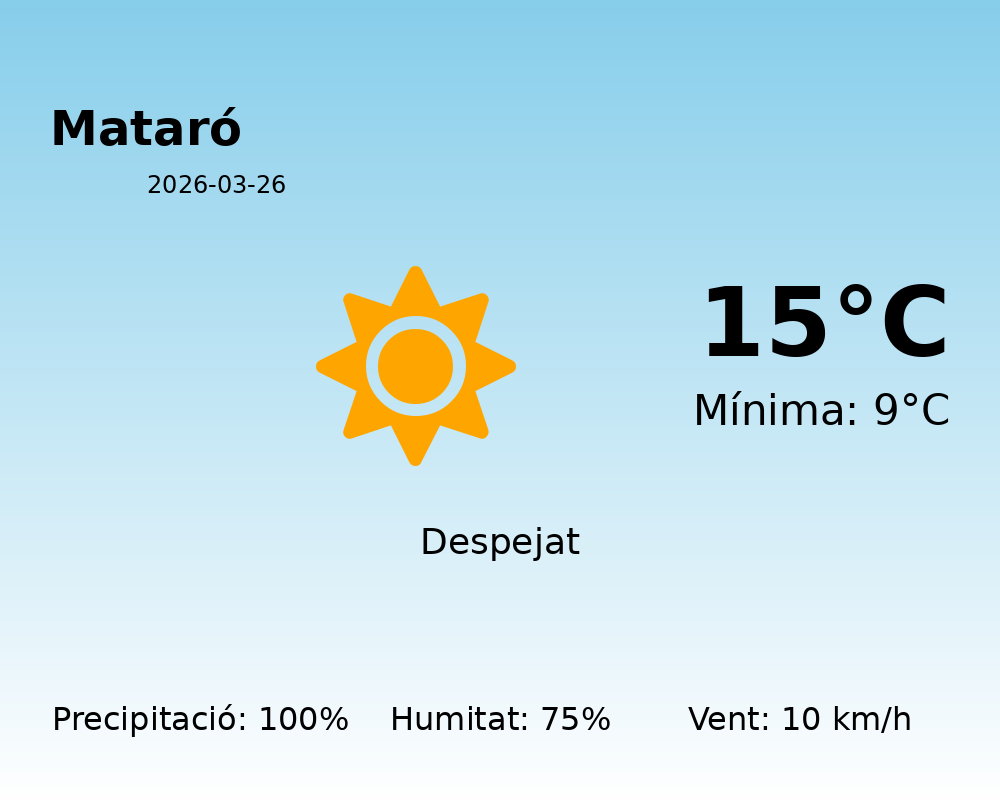 Bon dia a tots els habitants de Mataró. Avui, 26 de març de 2026, us portem la predicció meteorològica per a la vostra ciutat. Prepareu-vos per a una jornada marcada per la variabilitat climàtica, ja que el cel promet mantenir-se força ennuvolat durant tot el dia.